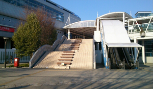 (かなざわはっけい) 横浜シーサイドライン 金沢シーサイドライン 『少女たちは荒野を目指す』第1話 ややこしいですが"横浜〜"が会社名で"金沢〜"が路線名だったり。 そして少々分かり辛いですが、左右の高い建物の間にうっすら見える のが駅になります(苦笑)。当時は京急とは離れた仮設駅状態で長い 歩道橋で結ばれていましたが、現在は延伸する形で一体化し便利に。 |