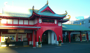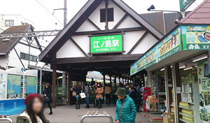 (かたせえのしま) 小田急電鉄 江ノ島線 『つり球』第1話 一度見たら忘れられないインパクト抜群の外観は竜宮城をイメージ したもの。しかし開業から90年以上経過し老朽化したことや、駅前 の道路を拡張する関係で既に建て替えが決定済みなので、訪れ たい人はお早めにどうぞ。ちなみに門松は普段はありません(笑)。 |