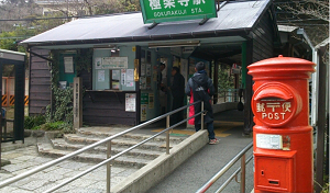 (ごくらくじ) 江ノ島電鉄 江ノ島電鉄線 『青い花』第3話 主人公のひとりであるふみ(通称ふみちゃん)と杉本先輩の初デートの際に 登場。一応断っておきますが二人とも女性です。(※ガチ百合系)1面1線の 小さな駅ながら、ロケーションの良さもあり様々な作品にて使われてたり。 写真は旧駅舎ですが新駅舎完成後も引き続き使用されている稀有な例。 |