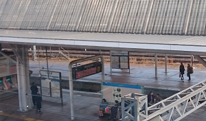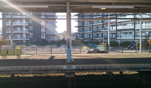 (こしがやレイクタウン) JR東日本 武蔵野線 『球詠』第9話 その名の通り2008年に街開きされた越谷レイクタウンの中核駅であり、 主人公達が通う新越谷高校のモデルとなった実在するとある高校への 最寄り駅。あちこち移動して頑張ってみましたが、車の中からの撮影の ようで歩道からだとこれが限界(汗)。別のアングルにすりゃよかった…。 |