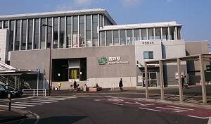 (にのみや) JR東日本 東海道本線 『アイドルマスター』第1話 メインヒロインである天海春香の自宅の最寄り駅。駅舎の外観や内部が 克明に描かれている割には(※ただし"二宮駅"の表記はなし)、電車が 右側通行だったりと描写が丁寧なのか雑なのか謎(苦笑)。冒頭の駅舎 全景を見下ろすカットは、駅北側にある吾妻山公園から撮影可能です。 |