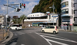 (しんずし) 京浜急行電鉄 厨子線 『ランス・アンド・マスクス』第1話 撮影当時と異なり現在は"逗子・葉山駅"に改称。(新逗子は副駅名に) 大手私鉄の特急発着駅(※ただし平日朝のみ)なのに1面1線なのは、 複線用地しかないところに駅を設置した為。写真の北口改札がホーム と離れているのは元々二つあった駅を一つに統合した名残だったり。 |