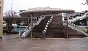 (つきみの) 東京急行電鉄 田園都市線 『ろんぐらいだぁす!』第3話 駅前広場が掘割型線路に覆いかぶさる独特のデザインが目を引きます。 劇中では"東電鉄"の"ほしみ野駅"。主人公の自宅最寄り駅ということも あり、待ち合わせ場所等に使われ何度か登場していたり。田園都市線 は少しずつ延伸開業していった為、途中数年間は当駅が終着駅でした。 |