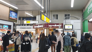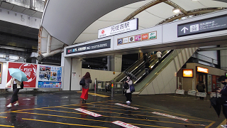 (もとすみよし) 東京急行電鉄 東横線&目黒線 『恋は雨上がりのように』第9話 主人公あきら(♀)のバイト先のファミレス"ガーデン元住吉店"最寄り駅。 ただしそのモデルと思しきガ〇ト新川崎明津店とは割と距離があります。 近隣の住吉神社の秋祭りに友人と赴く際の待ち合わせ場所として登場。 長いエスカレーターで三階の改札に上がり二階のホームに降りる構造。 |