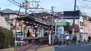 (えのしま) 江ノ島電鉄 江ノ島電鉄線 『C3-シーキューブ-』第7話 江ノ島を舞台としない作品でも使われることの多い当駅。外観の雰囲気が 魅力的だからでしょうかね。改札脇にあった売店は現在は逆側に移転し、 元の場所には某タリーズコーヒーの店舗が出来てオサレ感が増してたり。 懐かし車両が店先に存置され江ノ電もなかで有名な扇屋へは徒歩数分。 |