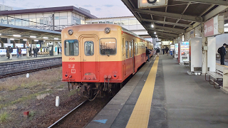 (おおたき) いすみ鉄道 いすみ線 『アクションヒロイン チアフルーツ』第2話 作品の舞台は"万葉県陽菜野市"なる架空の都市ですが、そこかしこに 登場する景色から大多喜がモデルなことは容易に特定出来るかと(笑)。 適度にデフォルメされてはいるものの、ホームが千鳥式だったりとツボは 抑えてますな。尚、ネーミングライツによる副駅名は"デンタルサポート"。 |