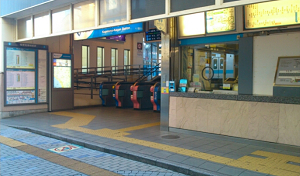 (いせざきちょうじゃまち) 横浜市交通局 ブルーライン(1号線) 『ISUCA』第7話 大通り公園内に直結する2番出入口からの撮影。雨の日だったこともあり 雨宿りしてる方々を避けるべく少々低めのアングルから撮ってます(苦笑)。 駅の所在地は長者町ながら近隣の繁華街である伊勢佐木町を取り込んで るのが何とも。徒歩圏内の横浜スタジアムへは混雑回避の穴場だったり。 |