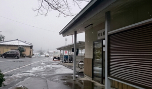 (あいおい) 長良川鉄道 越美南線 『のうりん』第11話 前に訪れた時にはまだあった1日フリー切符が廃止されてしまった のが微妙に痛かったり(汗)。しかも到着する頃に雪が降ってきたり (雨よりはマシ?)、更には撮影ポイントと目される場所に軽トラが 停まってて邪魔だったりと散々(泣)。顔出しキャラ看板は今もある? |