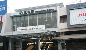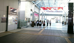 (ながの) JR東日本 信越本線 『新幹線変形ロボ シンカリオンZ』第5話 写真は2015年の北陸新幹線金沢延伸にあわせ改装された善光寺口を 歩行者専用デッキから撮影。並行在来線扱いとなる信越本線は運用の 都合等もあり当駅から篠ノ井駅まではJR東日本管理のまま。改装前の 外観は『RDG レッドデータガール』や『長門有希ちゃんの消失』で登場。 |